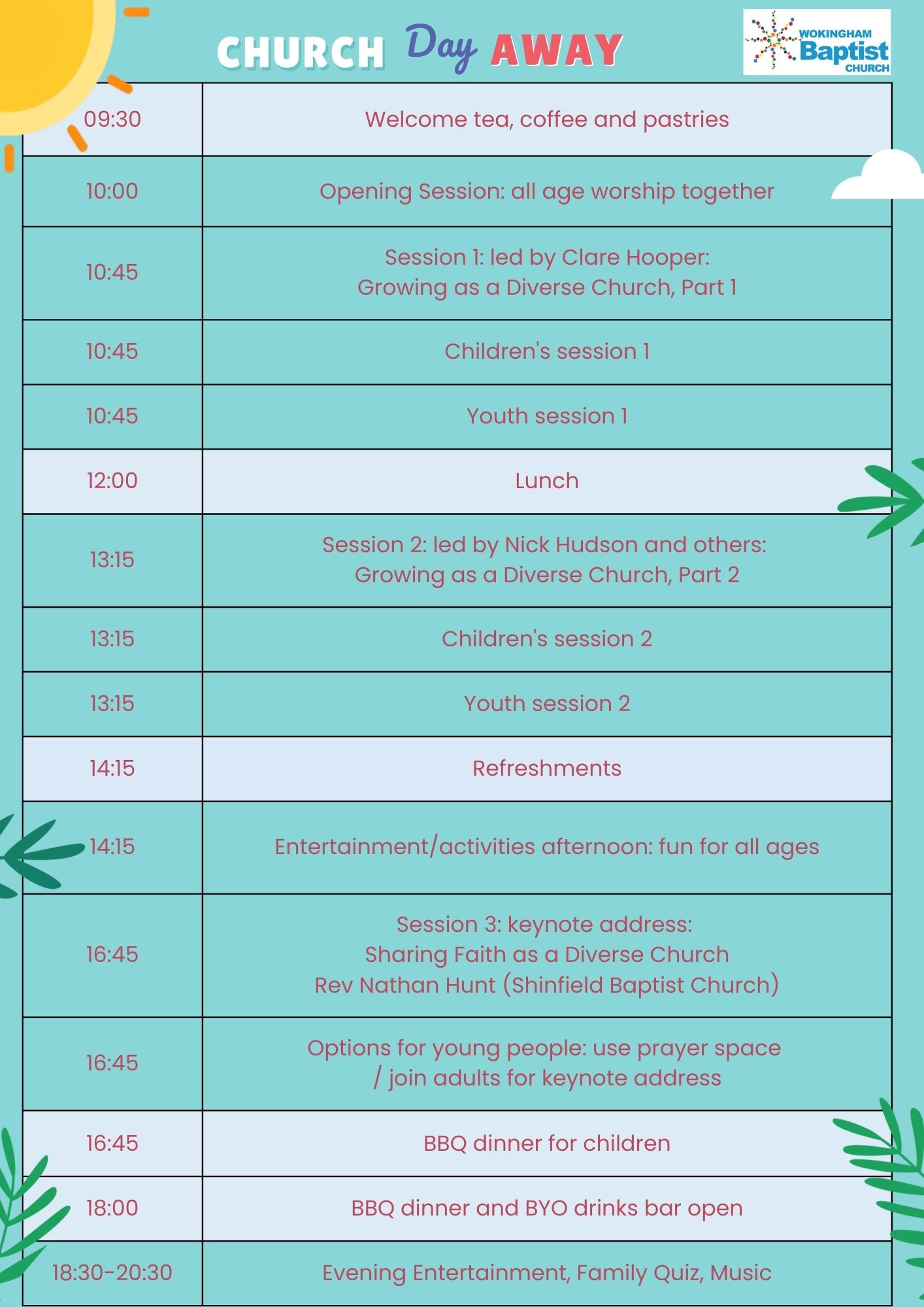 Our Church Day Away has been set for Saturday 27th June 2026 at Alder Grove Primary School: 9:30am-9pm, and it promises to be a great day out for the whole Church family.